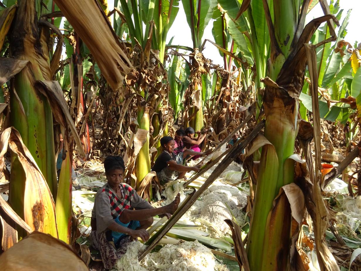 Women harvest enset in the Ethiopian Highlands. Credit: Royal Botanic Gardens, Kew