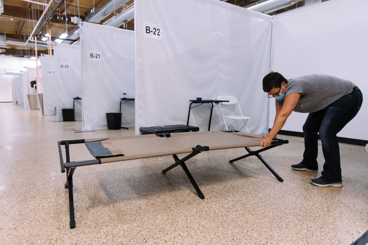 The buildings, with cots separated by curtain walls and plenty of individual shower and bathroom stalls, now have a steady stream of occupants - but they are not sick with COVID-19.