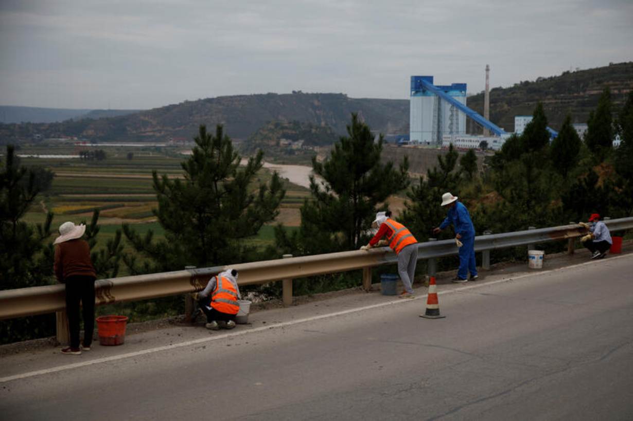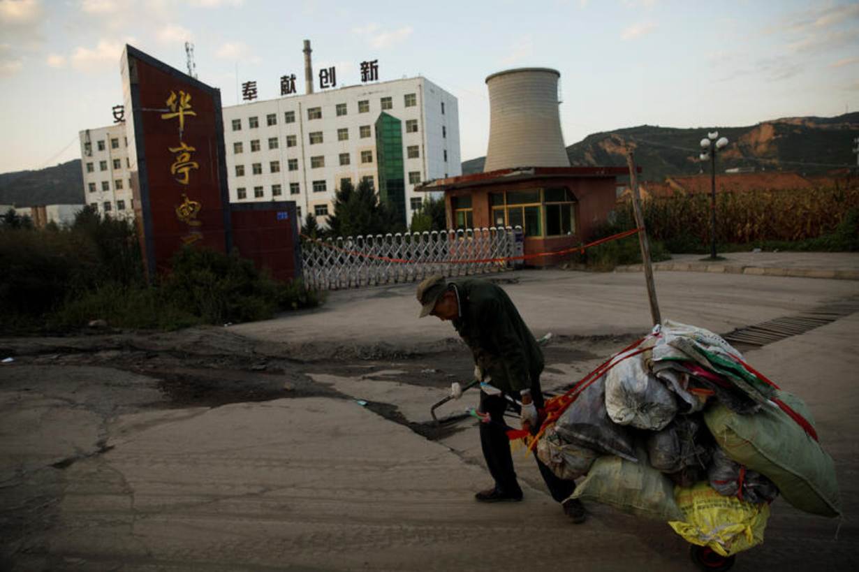 On the outskirts of the provincial capital Lanzhou, the two giant cooling towers of the Liancheng plant have stood idle since 2018. With most workers relocated, a skeleton staff guards the property, tends to a small flower garden and feeds an elderly watchdog tethered to a truck.
