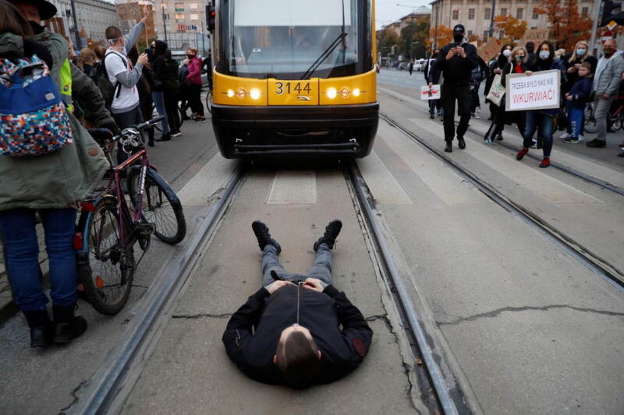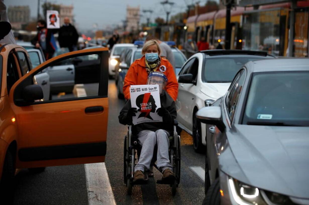 WARSAW, Oct 26 (Reuters) - Tens of thousands of Poles blocked city streets in cars, on bicycles and on foot on Monday on the fifth day of protests against a Constitutional Court ruling that amounts to a near-total ban on abortion in the predominantly Catholic country.
