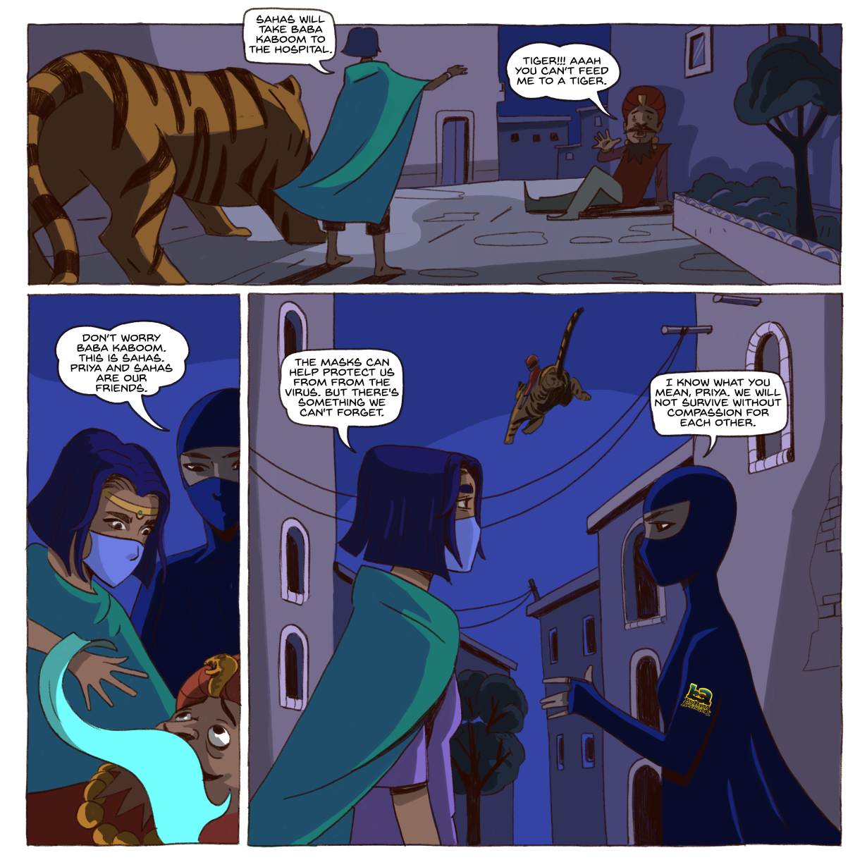In "Priya's Mask", India's first female superhero befriends a little girl, Meena, to show her the sacrifices made by health workers, like her mother, and to spread compassion and battle COVID-19 myths, such as young people not being at risk.