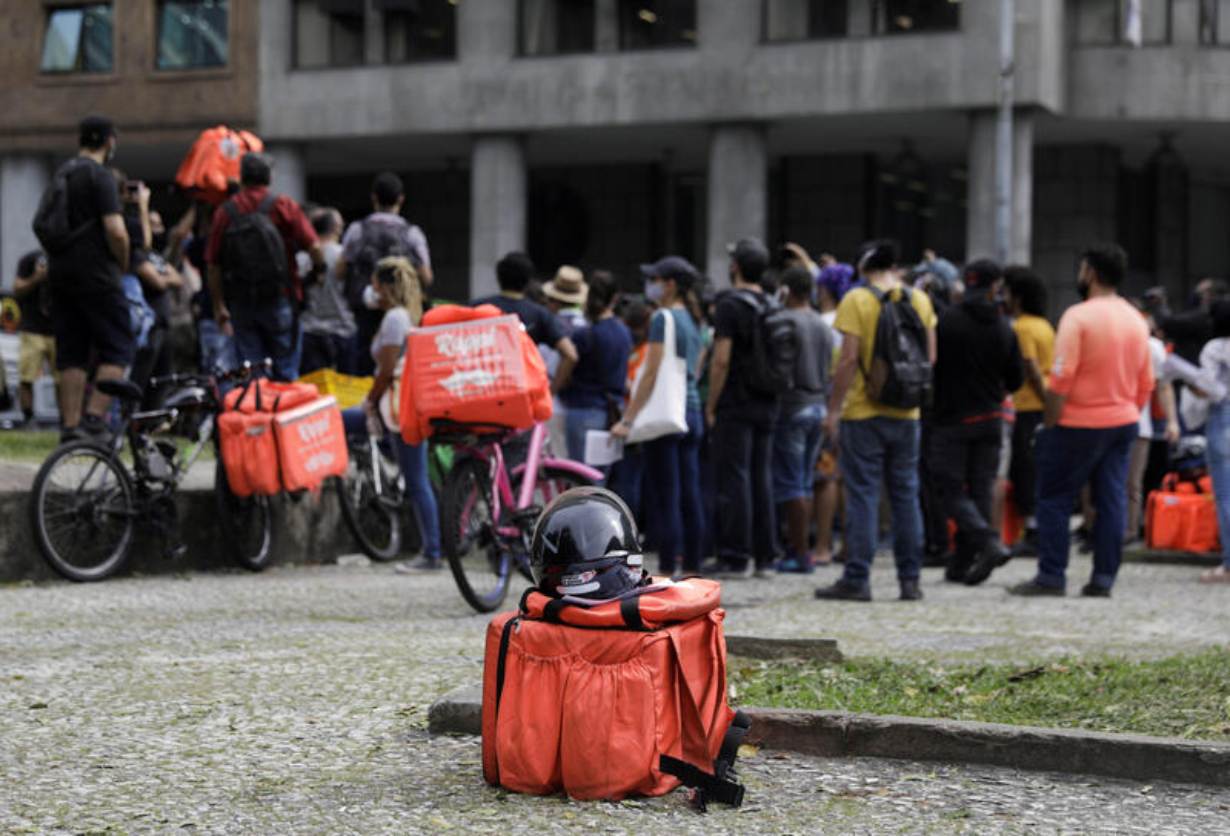 More than 1,000 gig workers protested in São Paulo in July to call for better pay and health measures, and said they risked being blocked by the apps if they refused to work longer hours.