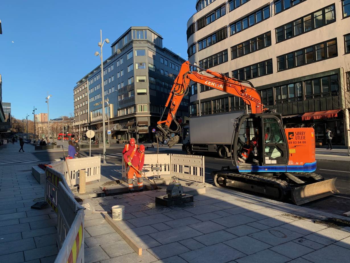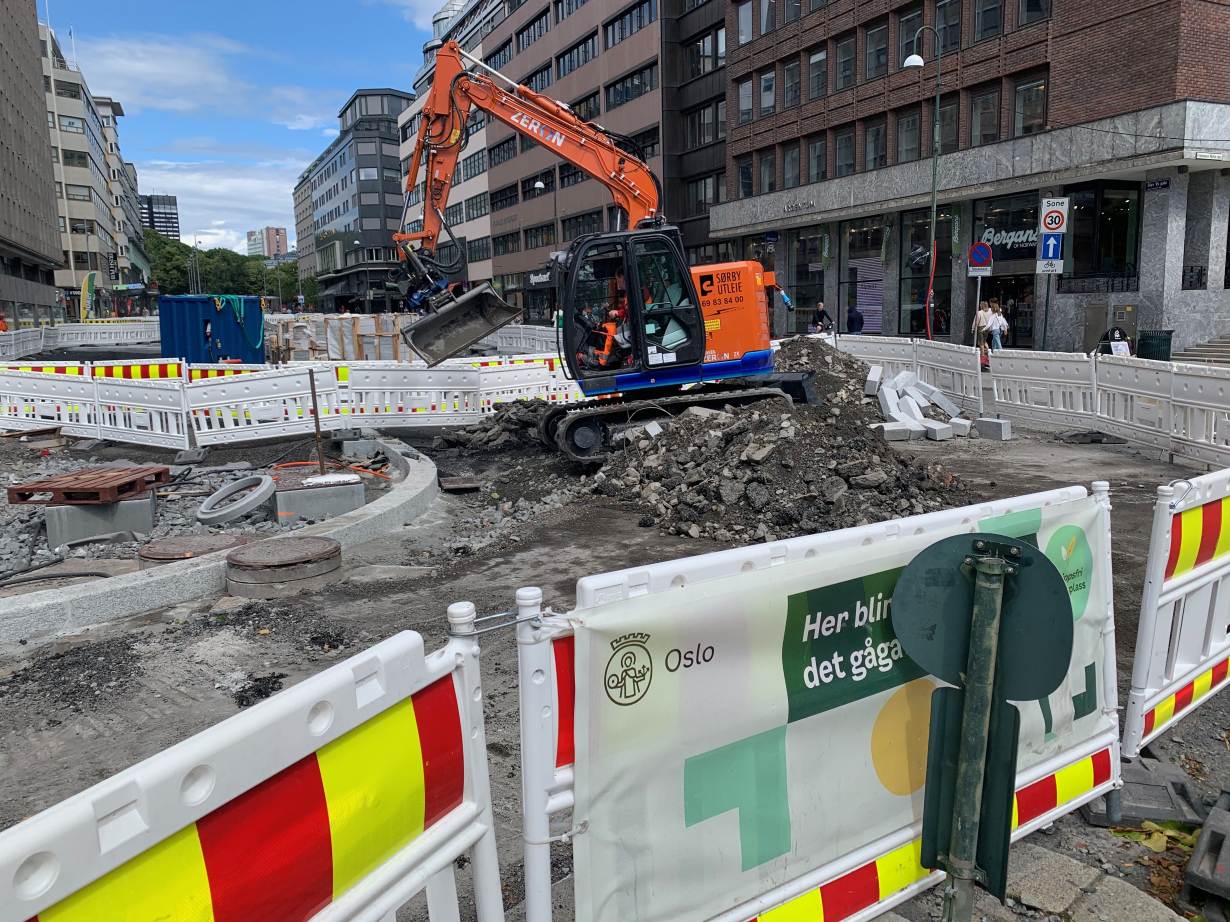 Plug-in diggers, saws for cutting stones and other electric machinery have been used to create a pedestrian area in the centre of the Norwegian capital - completed in time for Christmas.
