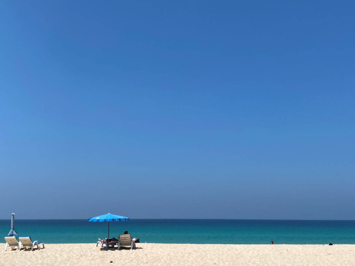 A near-empty beach at Kata Noi in Phuket, Thailand. February 24, 2021. Thomson Reuters Foundation/Rina Chandran