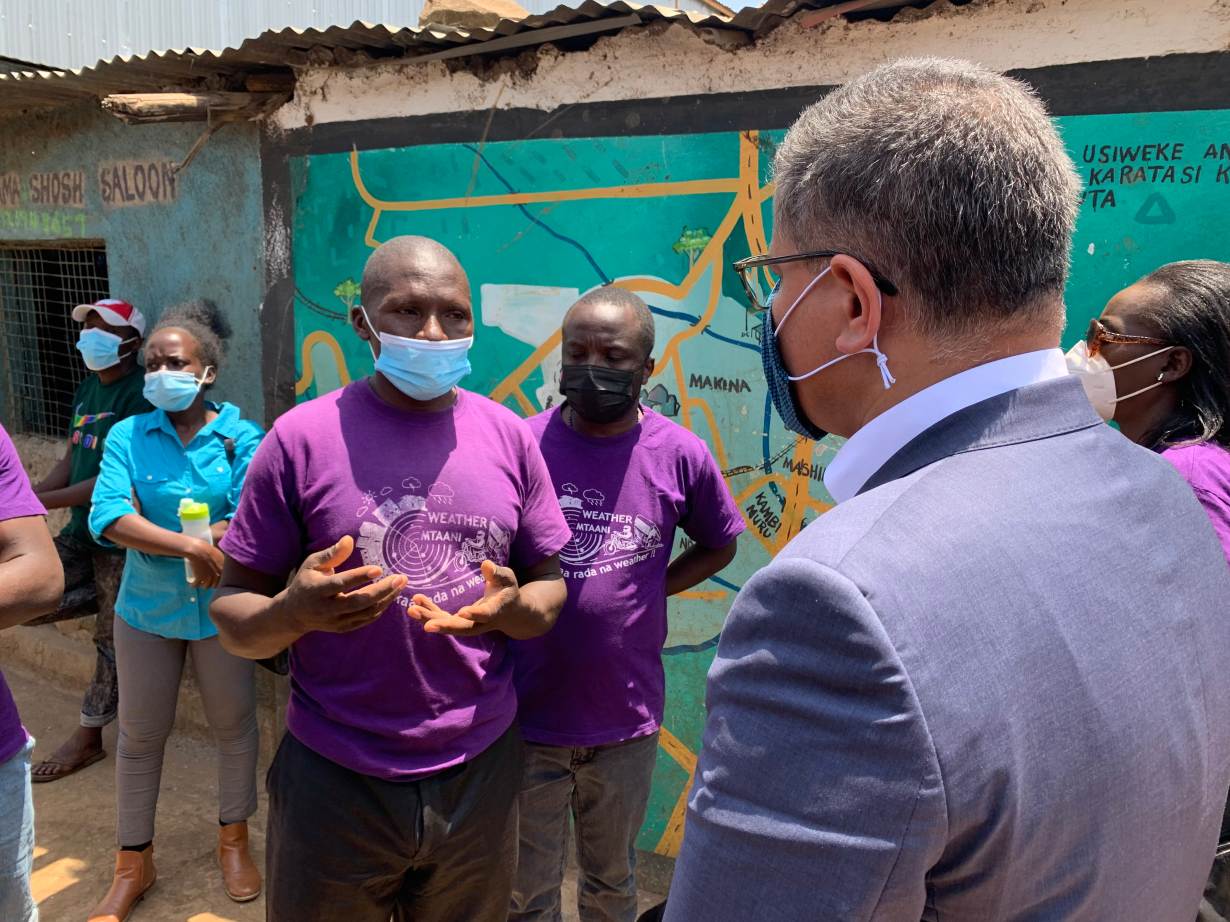Alok Sharma, president of the United Nations conference, was visiting a community-led project in Nairobi's flood-prone Kibera settlement that provides easy-to-understand weather forecasts via SMS, WhatsApp and radio.