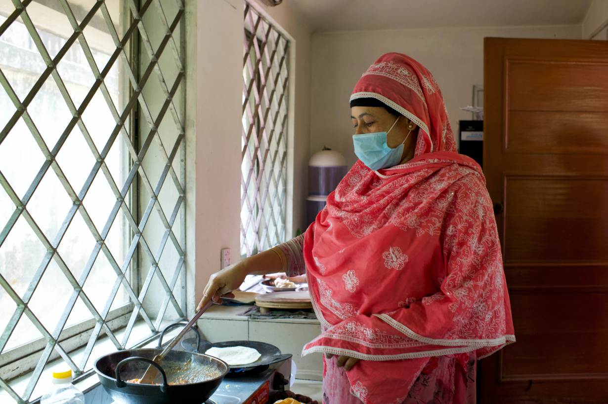 In the cafe in the corner of a training centre for migrants, Parvin fries samosas and puris for breakfast and cooks rice, fish and chicken for lunch for Bangladeshis learning to speak Arabic or fix motors before applying for a job abroad.