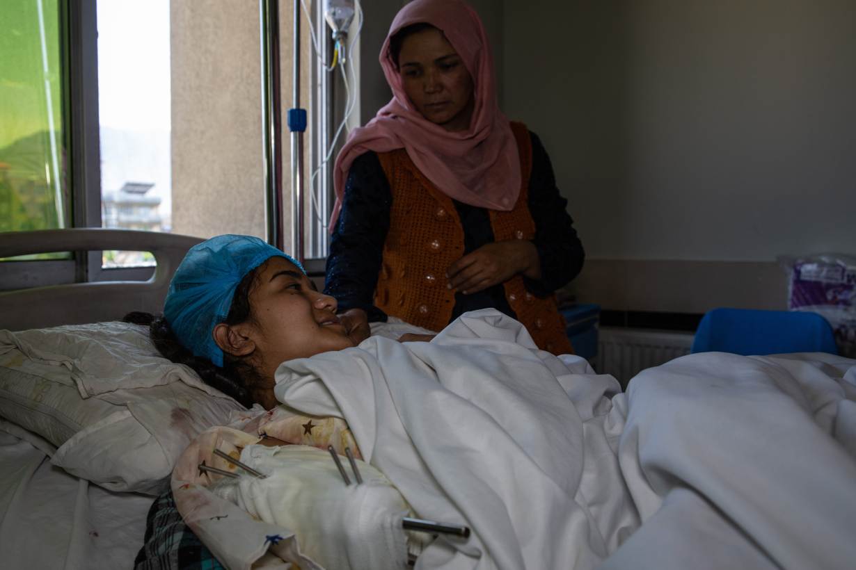 Student Hamida Nawisada, 16, is recovering at Kabul's Ali Jinnah hospital, her right arm in a cast from which metal screws protrude.