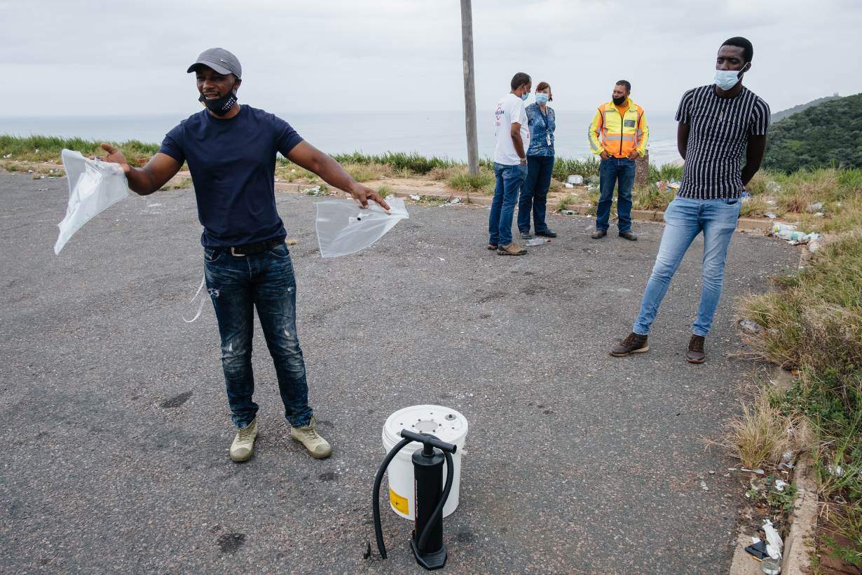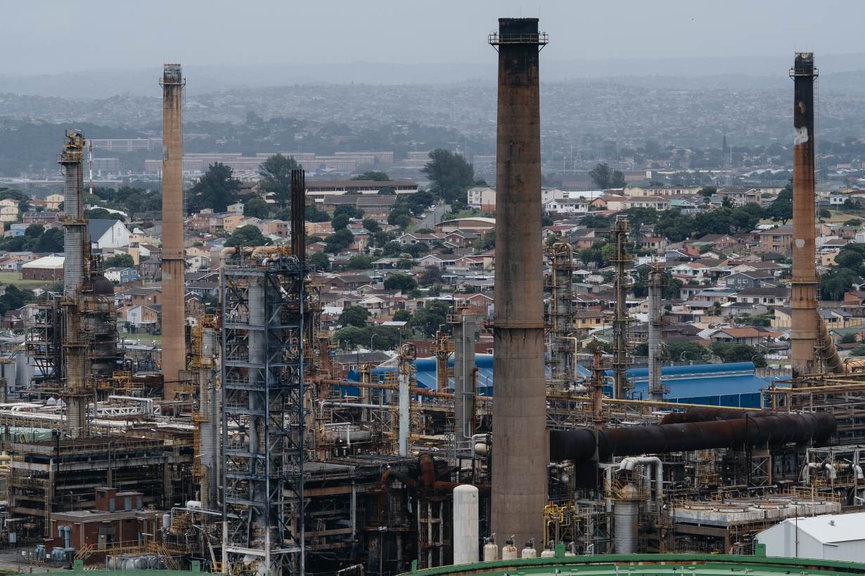Standing between the recently shuttered Engen oil refinery on one side and the crashing waves of the Indian Ocean to the other, SDCEA air quality officer Bongani Mthembu pointed to homes stacked alongside factories and fuel infrastructure.