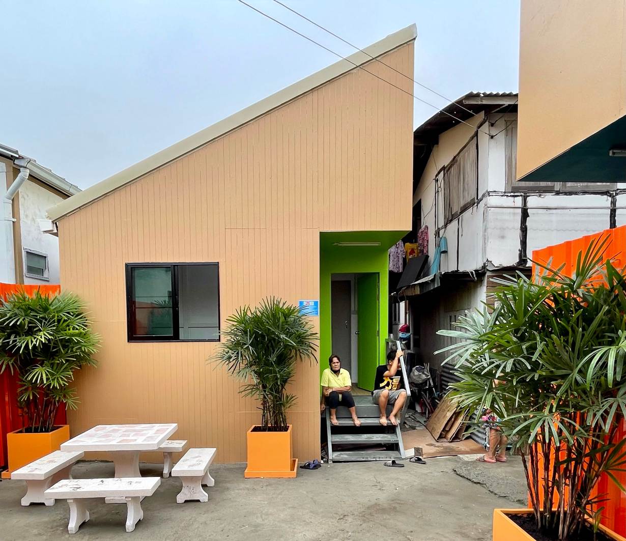 The new micro homes designed by Varudh Varavarn, founder of Vin Varavarn Architects, stand out in sharp contrast to the dilapidated shacks with their tidy porches and solid walls.