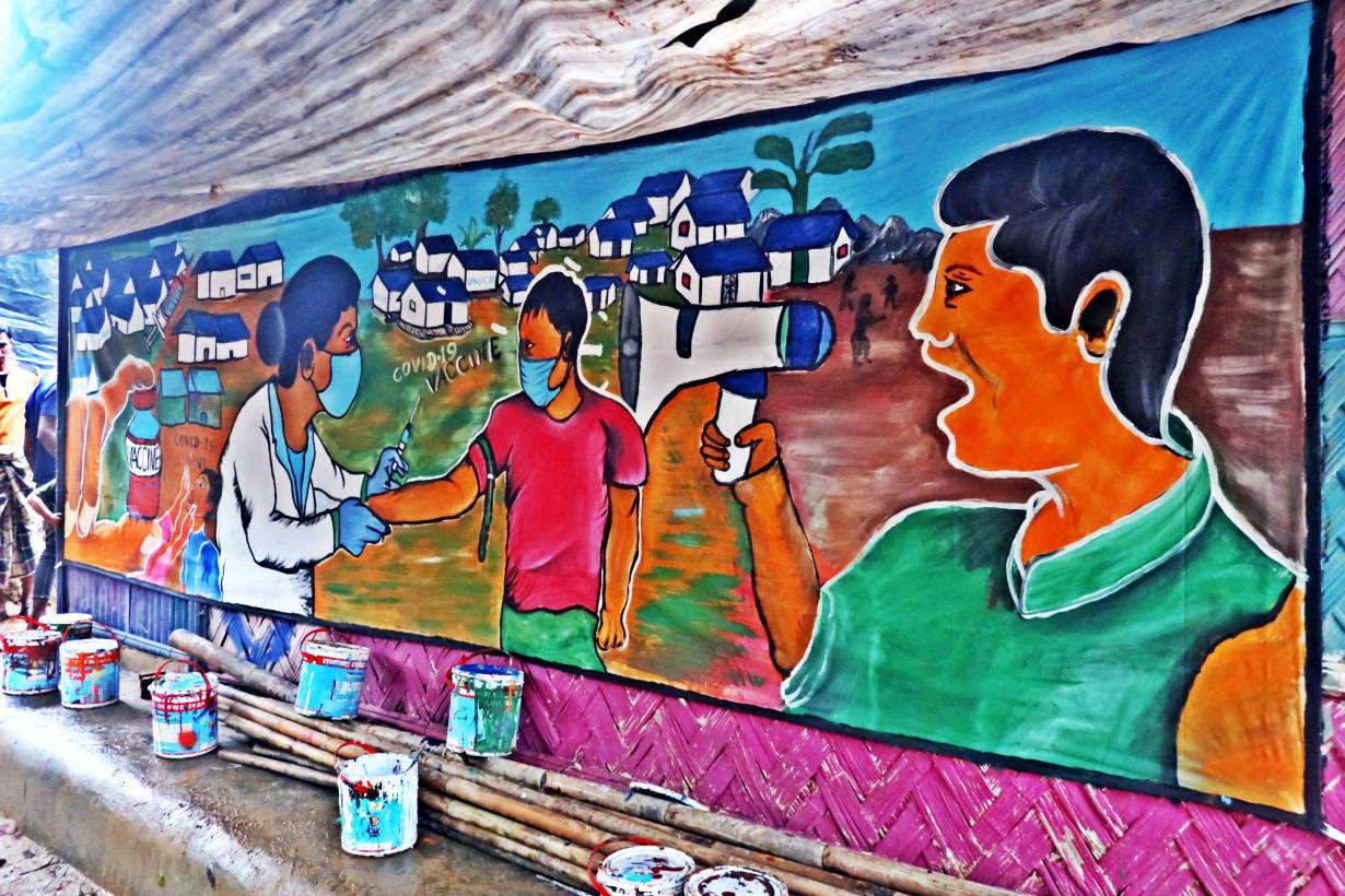 From muralists to musicians, Rohingya artists are helping to address social problems and allay vaccination fears in the world’s largest refugee settlement