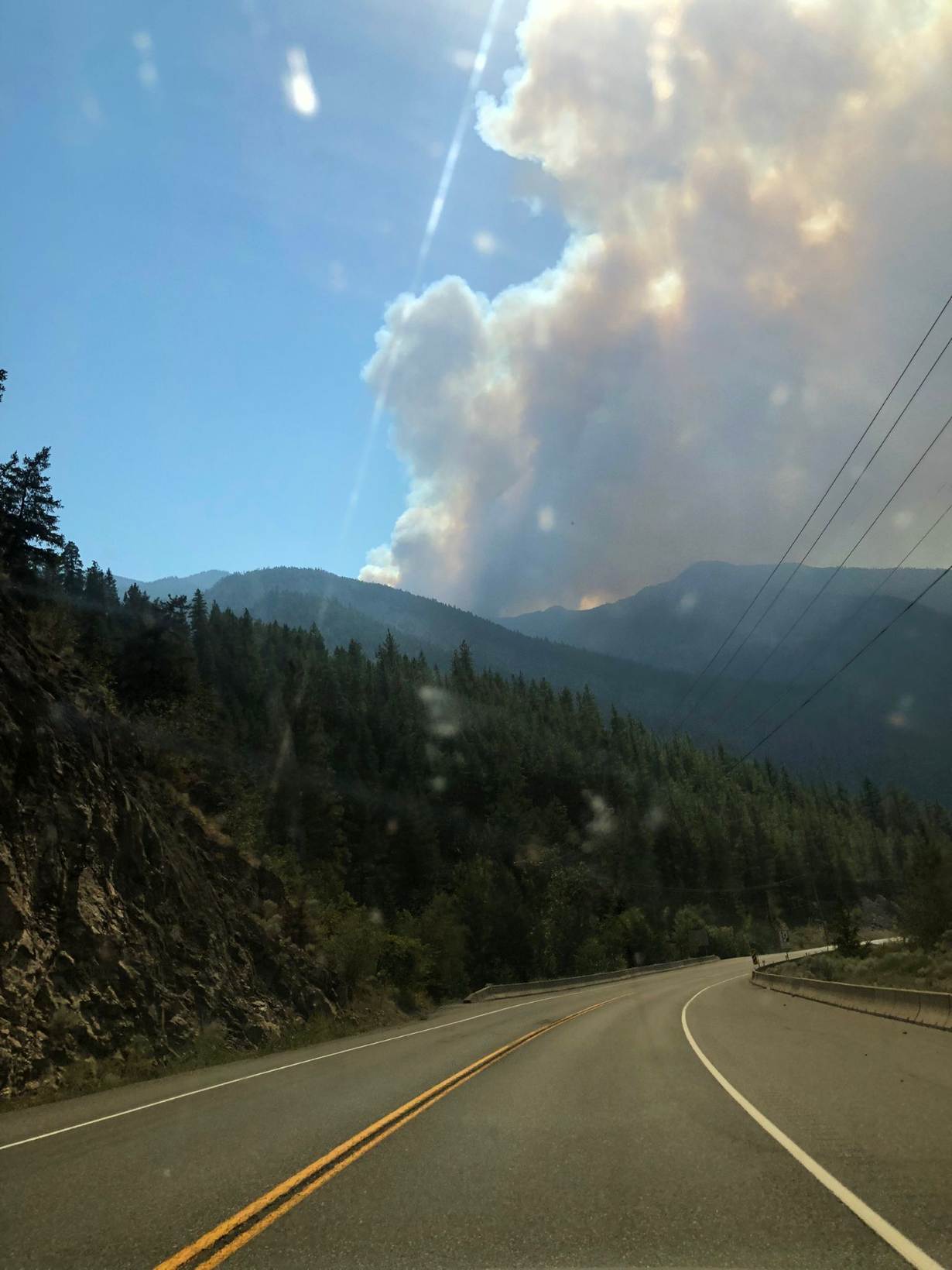 Our car’s temperature sensors told us it was 47°C outside, and we could already see wildfires burning in the mountains surrounding the town and lapping at the side of the highway.