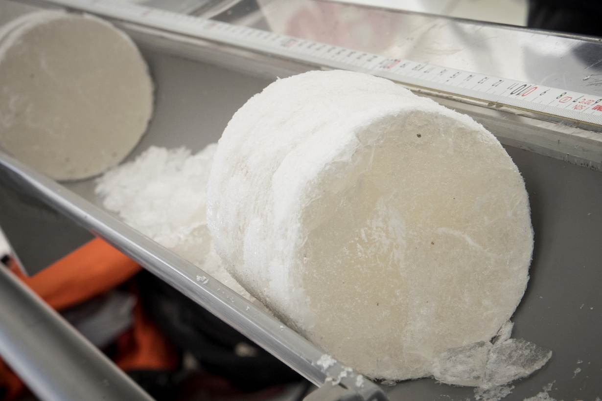 Last September, Schwikowski stood bundled in snow gear as wet cylinders of ice were winched out of the boreholes on Grand Combin. The wetness surprised her, she said. Frigid meltwater drained from ice core pieces that should have been solid. And the core, which should have been translucent, had sections that were perfectly clear.