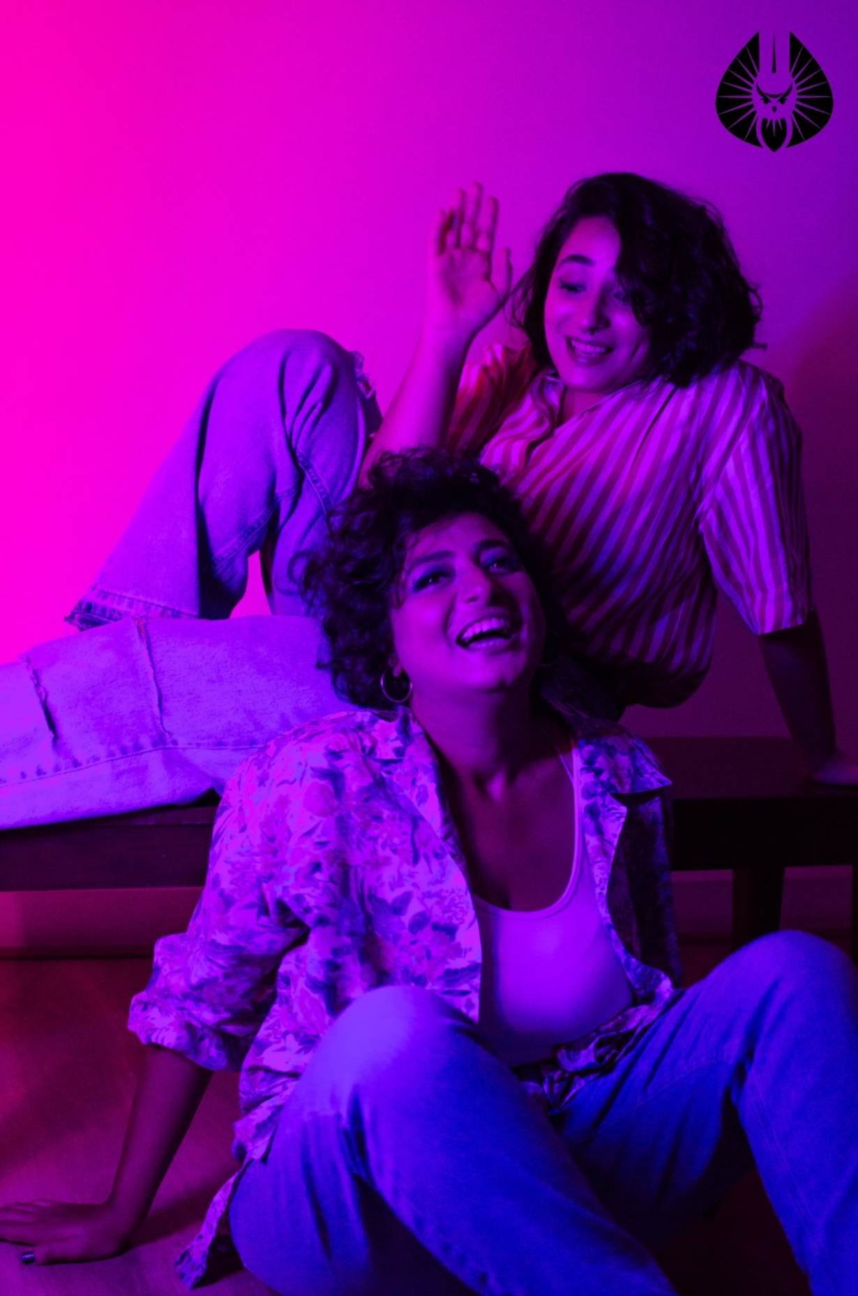 Mariam Samir (right) and Marina Samir (left) laughing in a photoshop in Cairo. Thomson Reuters Foundation/Handout by Elbouma band