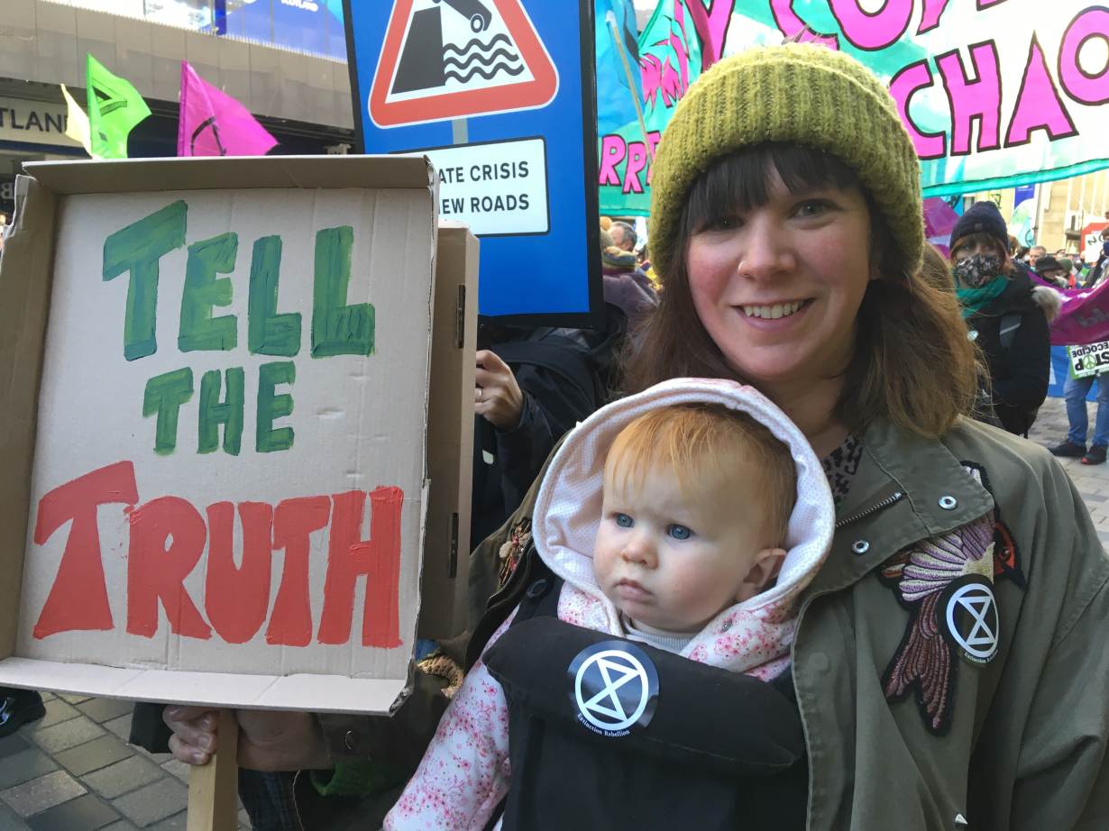 GLASGOW, Nov 3 (Thomson Reuters Foundation) - Schoolteacher Claire Birmey had never joined a climate change protest before - but on Wednesday she strapped her baby daughter Nora to her chest and marched with hundreds of chanting Extinction Rebellion activists through central Glasgow.