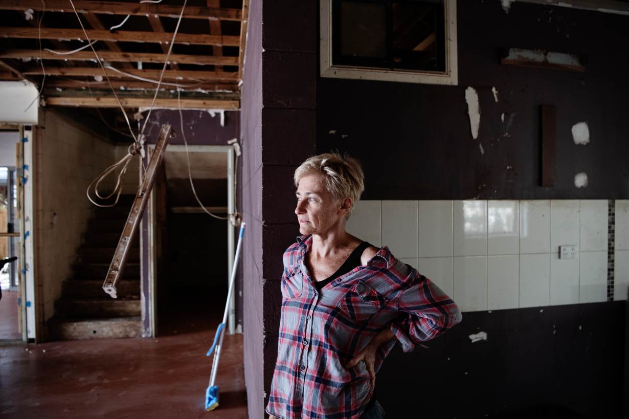 The kitchen and bathrooms have been gutted, walls are still caked with mud and mould, and her children have been forced to temporarily stay with relatives in the neighbouring state of Queensland.