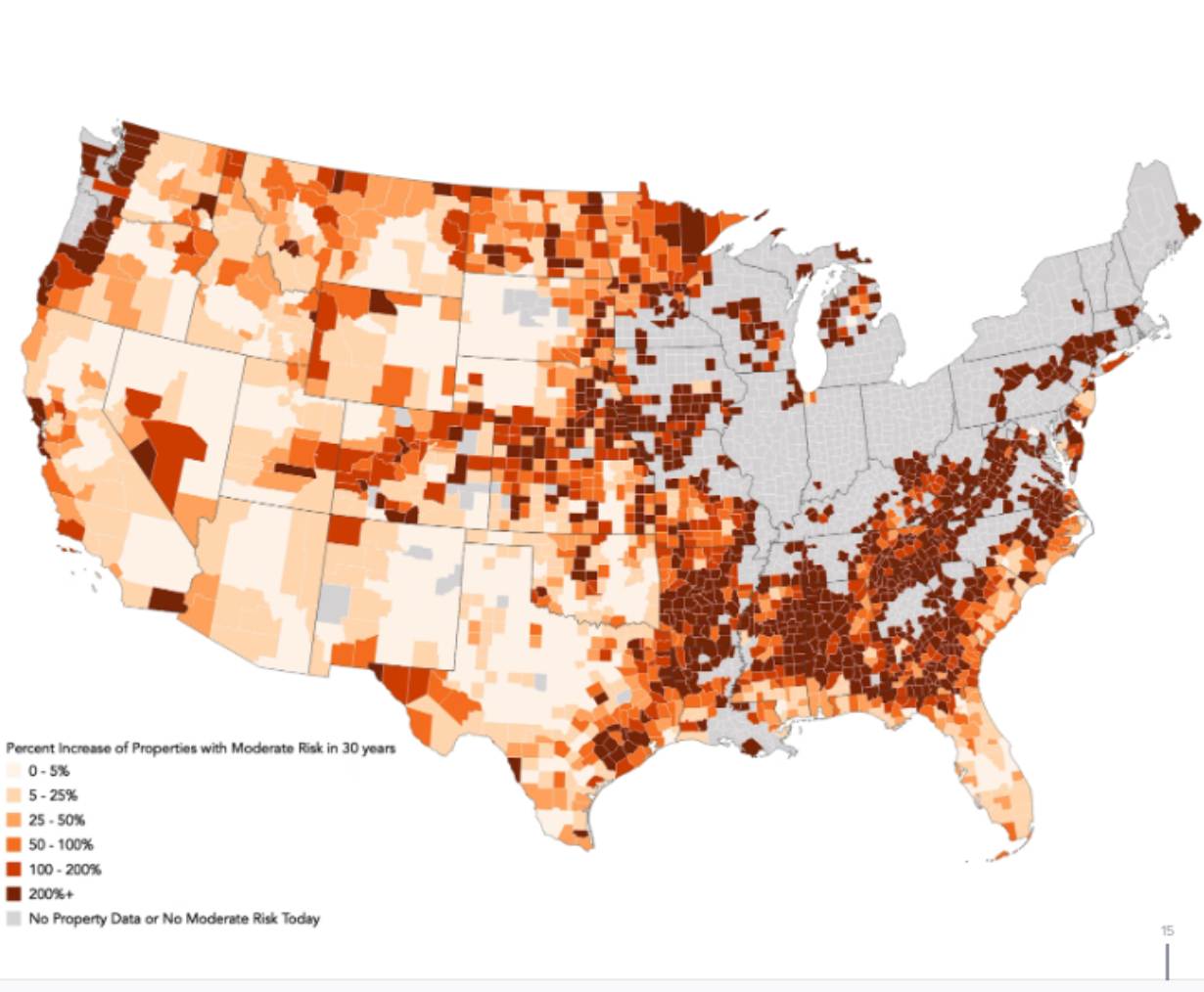 "Wildfire risk is increasing so much faster than even flood risk is across the U.S.," said Ed Kearns, the group's chief data officer. "And it's likely to affect areas that aren't thought of as wildfire-prone areas right now, but will be soon."
