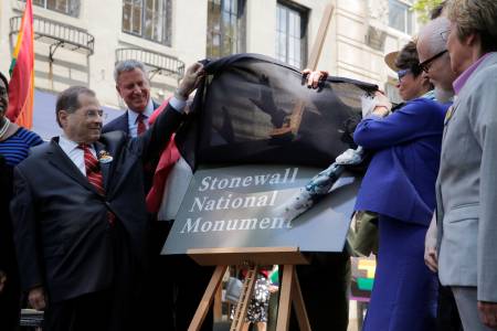 The monument remembers the Stonewall riots of June 1969, seen as the protests that birthed the international gay rights movement.