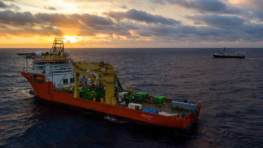 The machine is meant to collect the potato-sized nodules rich in cobalt and other battery metals that pepper the seabed in this area, and was connected to GSR's ship with a 5km cable
