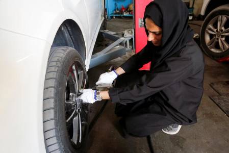 Mechanic Huda al-Matroushi now runs her own car repair business after convincing her family to let her work in the male-dominated sector