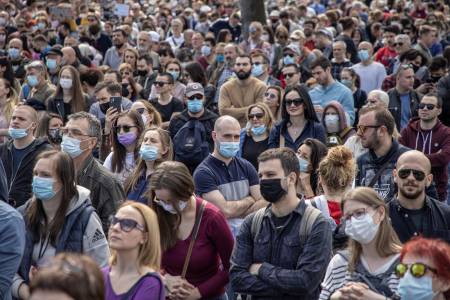 Protesters, who came to Belgrade from all over Serbia, held banners reading "Cut corruption and crime not forests," and "Young people are leaving because they cannot breathe"
