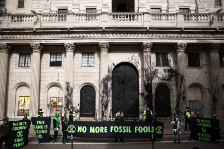Climate activists spray black dye at Bank of England in 'Money Rebellion'