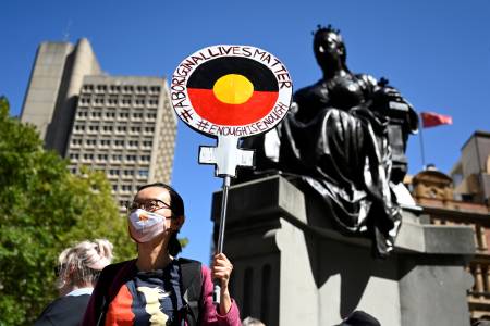 Black-clad women rally in Australia to demand gender violence justice