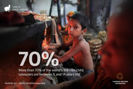 The global number of children in child labour has declined by one third since 2000, from 246 million to 168 million children, according to the International Labour Organisation. Despite this sharp decline child labour remains entrenched among the youngest children - more than 70 percent are between 5 and 14 years old and work in agriculture.