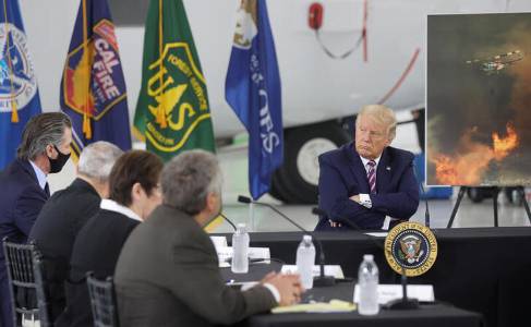 The president and his administration have long sought to pin the blame for large wildfires on how state officials manage forests, with Joe Biden branding Trump a "climate arsonist"
